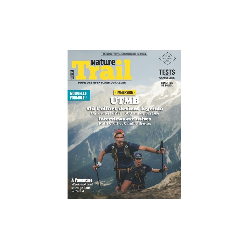 Avec le magazine Nature Trail, découvrez des portraits de champions, des reportages, des astuces techniques, des conseils de pro, des questions réponses sur l'entrainement et la santé, des plans d'entrainement, des parcours de trail, le calendrier des courses, de nombreux tests de matériel et toujours de superbes photos. Ouvrez votre culture du trail en vous abonnant au magazine Nature Trail.